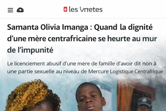 Bangui, le 17 avril 2026—Il est des histoires qui ne se racontent pas. On les tait, on les ravale, on les enterre sous la honte de celui qu’on aurait dû clouer au pilori. Mais Samanta Olivia Imanga, elle, a décidé de parler. Et sa parole, […]