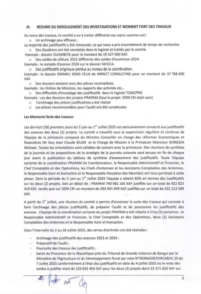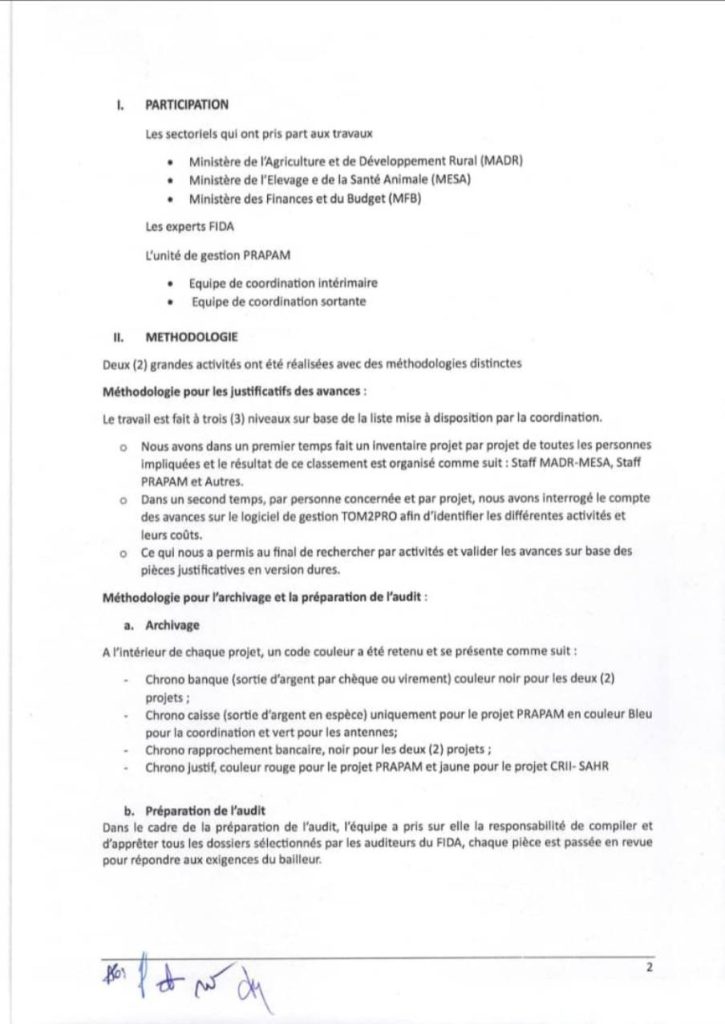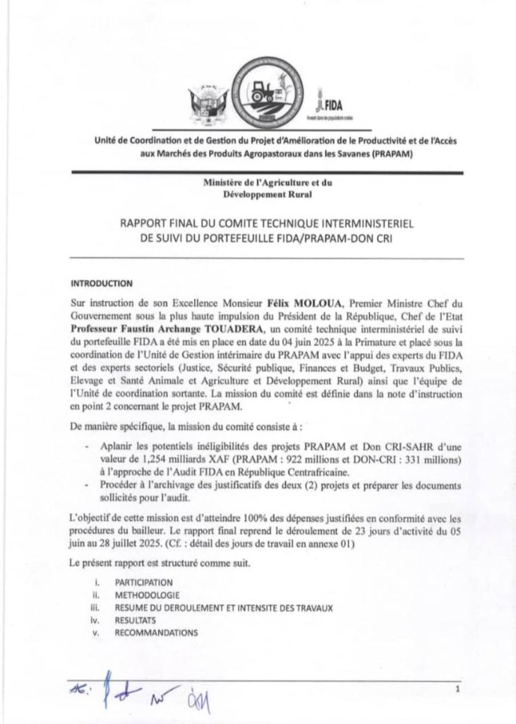 Ce document se retrouve pourtant, dans des dĂ©lais qui dĂ©fient toute explication administrative ordinaire, sur les bureaux du ministère de l’Agriculture, du ministère de l’Élevage, de la Primature, et jusqu’au siège romain du FIDA. De rapport de gestion, il est devenu instrument d’accusation. De la transparence, on a fabriquĂ© un dossier Ă  charge. La question — simple, directe, sans rĂ©ponse officielle Ă  ce jour — est la suivante : qui a transmis ce document, Ă  qui, et dans quel but ?