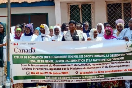 Une quarantaine de femmes musulmanes ont pris part, les 28 et 29 octobre derniers, à une session de formation consacrée au leadership féminin, à la gestion des conflits et à l’engagement citoyen.L’initiative, portée par l’Association Solidarité Islamique de Centrafrique (SIC) avec l’appui du gouvernement du […]