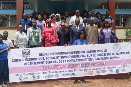 L’Institut Centrafricain des Statistiques, des Études Économiques et Sociales (ICASEES) poursuit activement sa campagne de sensibilisation en préparation du Quatrième Recensement Général des Populations et de l’Habitation (RGPH-4). Ce recensement, qui constitue une étape importante pour le développement socio-économique du pays, implique l’ensemble de la […]